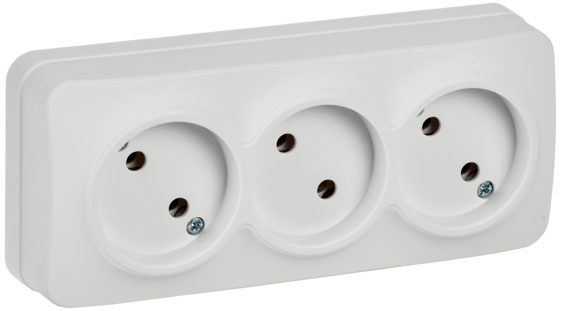 - IEK GLORY Розетка 3-местная для открытой установки без заземления без защитных шторок 10А РС23-2-ХБм белый матовый (ERH30-K01M-10)