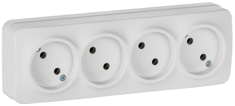 - IEK GLORY Розетка 4-местная для открытой установки без заземления без защитных шторок 10А РС24-2-ХБм белый матовый (ERH40-K01M-10)