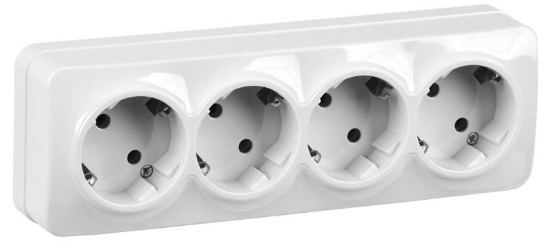 - IEK GLORY Розетка четырехместная наружная с заземлением белая (ERH41-K01-16)