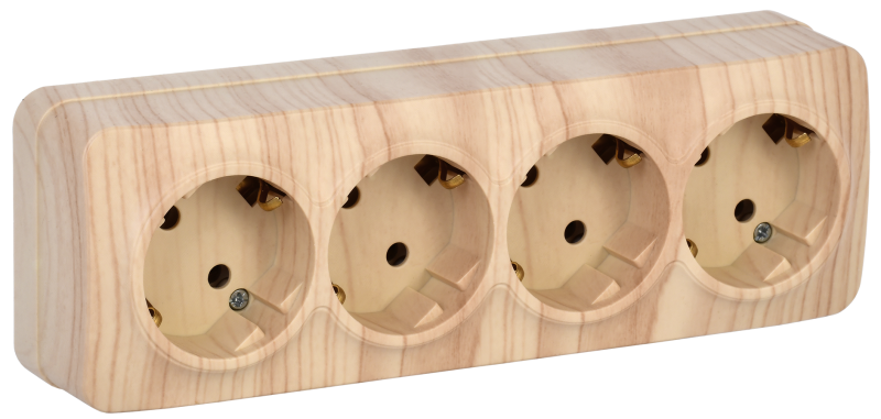 - IEK GLORY Розетка четырехместная наружная с заземлением сосна (ERH41-K34-16)