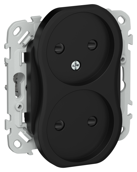- FLITE Розетка 2-местная без заземления с защитными шторками безвинтовое крепление 10А черный (FI-R23-10-1-K02)