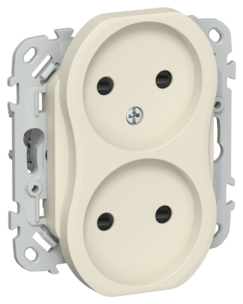 - FLITE Розетка 2-местная без заземления с защитными шторками безвинтовое крепление 10А сливочный (FI-R23-10-1-K86)