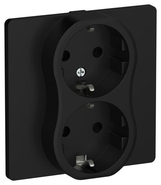 - FLITE Розетка 2-местная с заземлением без защитных шторок 16А в сборе РС12-0-К- черный (FI-R21C-16-K02)