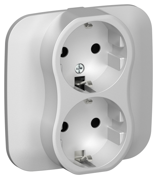 - FLITE Розетка 2-местная с заземлением без защитных шторок безвинтовое крепление 16А в сборе алюминий (FI-R21A-16-1-K47)
