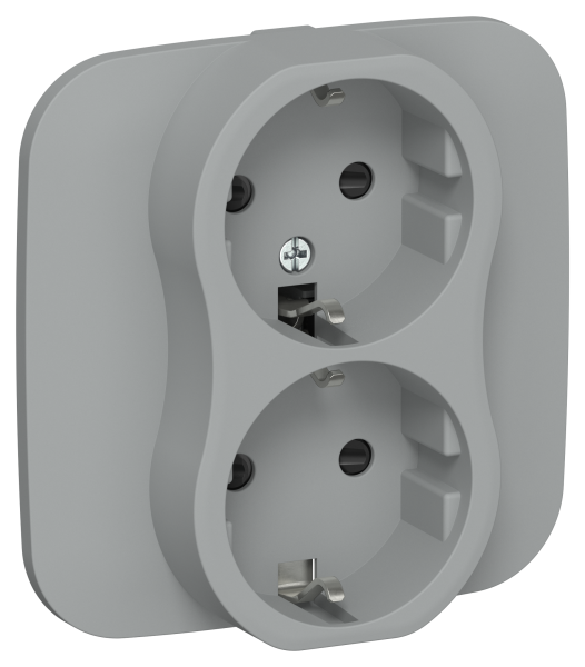 - FLITE Розетка 2-местная с заземлением с защитными шторками безвинтовое крепление 16А в сборе серый (FI-R24A-16-1-K03)