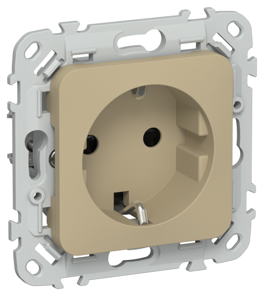 - FLITE Розетка с заземлением с защитными шторками безвинтовое крепление 16А хаки (FI-R14-16-1-K59)