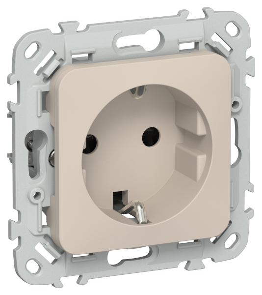 - FLITE Розетка с заземлением с защитными шторками безвинтовое крепление 16А льняной (FI-R14-16-1-K88)