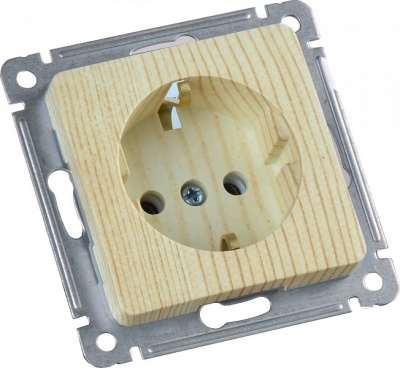 - HEGEL MASTER Розетка одноместная с заземляющим контактом, со шторками, скрытой установки, в рамку, сосна (РС16-412-02)