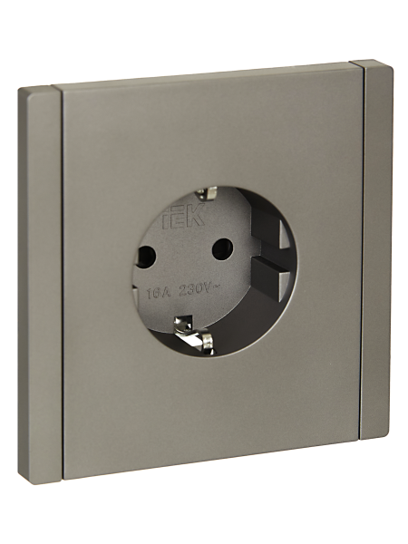 - IEK FORTE&PIANO Розетка 1-местная с заземлением с защитными шторками безвинтовое крепление 16А FP513 сталь (FP-R14-16-1-K46)