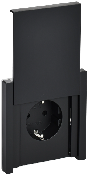 - IEK FORTE&PIANO Розетка 1-местная с заземлением с защитными шторками и крышкой безвинтовое крепление 16А IP44 FP119 черный (FP-R16-16-1-44-K02)