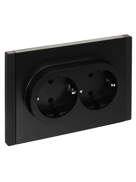 - IEK FORTE&PIANO Розетка 2-местная с заземлением с защитными шторками безвинтовое крепление 16А FP123 черный (FP-R24-16-1-K02)