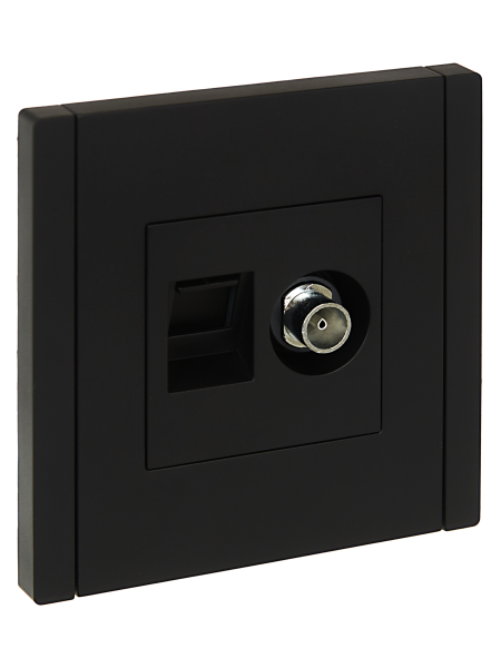 - IEK FORTE&PIANO Розетка двойная TV+RJ45 кат.5E FP136 черный (FP-AK20-1-K02)