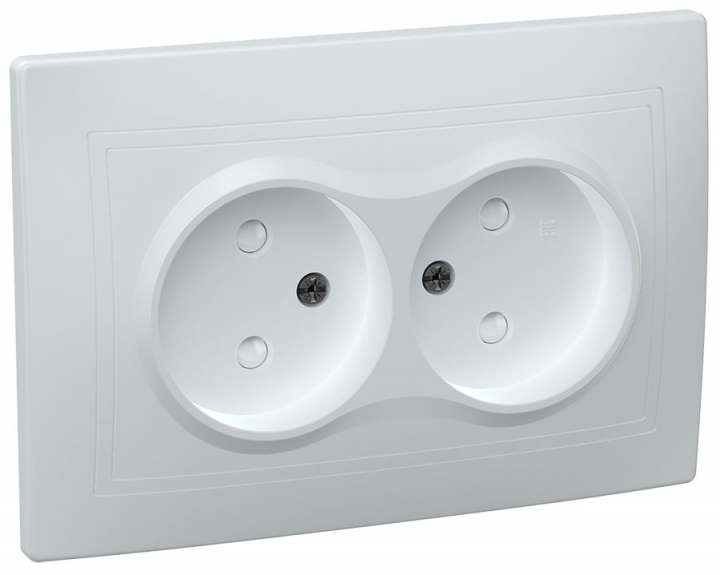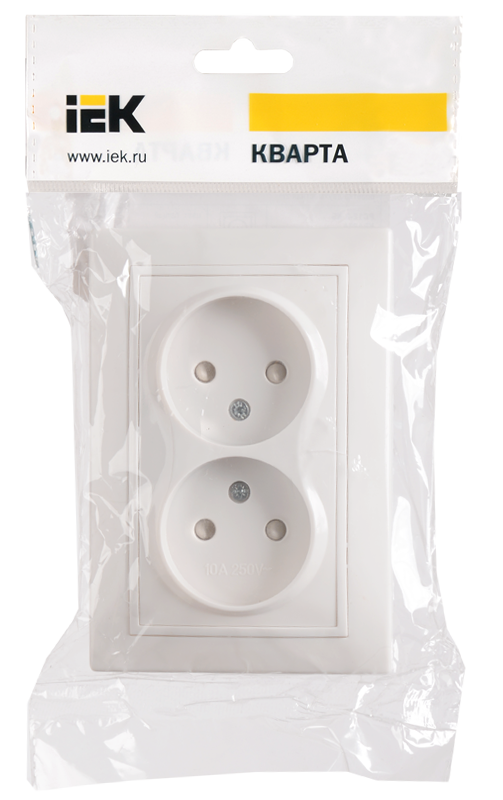 - IEK КВАРТА Розетка двойная без заземления сошторками 10А белый (ERK20-K01-10-DM)