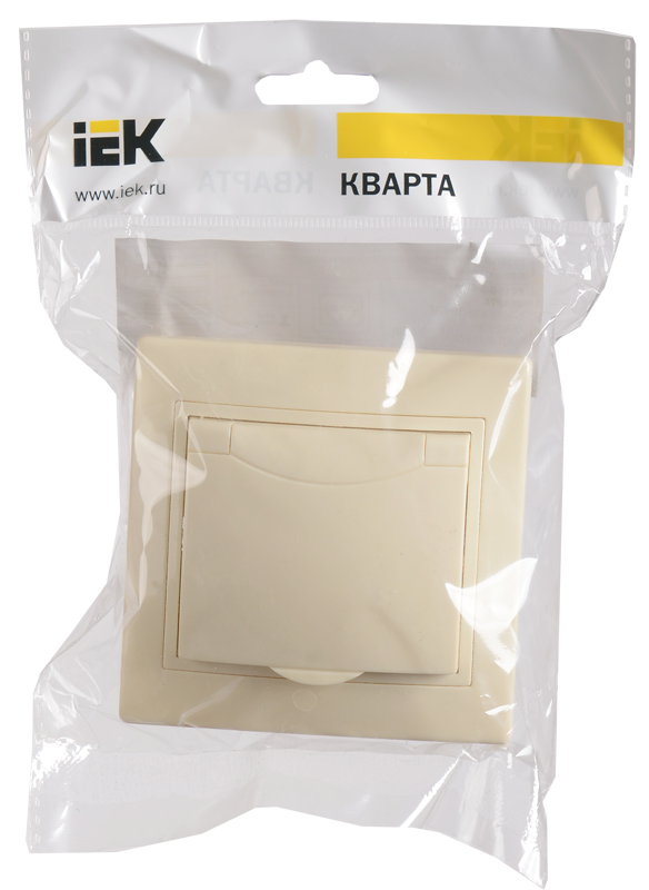 - IEK КВАРТА Розетка с заземлением с крышкой бежевая 16А (ERK15-K33-16-DM)