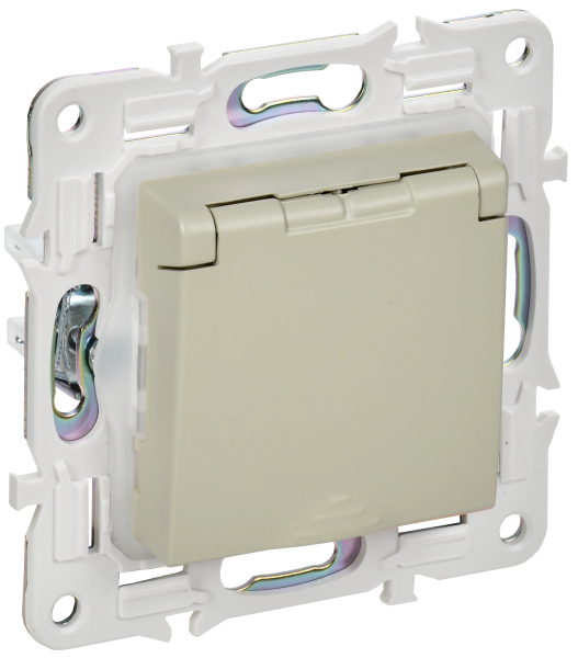 - IEK SKANDY Розетка 1-местная с заземлением с защитными шторками и крышкой 16А IP44 SK-R11B бежевый (SK-R16-16-44-K10)