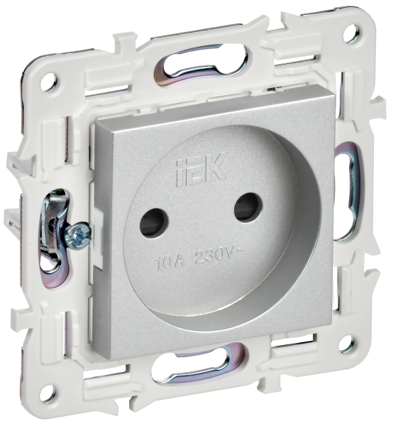 - IEK SKANDY Розетка без заземления с защитными шторками 10А SK-R01S серебряный (SK-R13-10-K23)