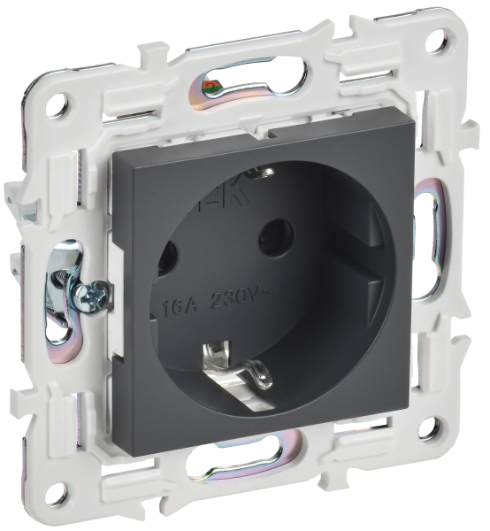 - IEK SKANDY Розетка с заземлением с защитными шторками 16А безвинтовое крепление SK-R06T титан (SK-R14-16-1-K48)