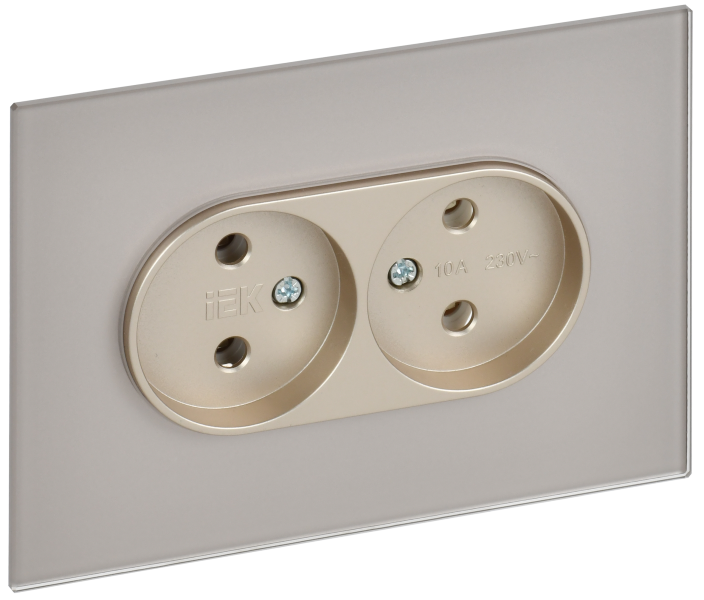 - IEK SKANDY Розетка 2-местная без заземления без защитных шторок для плоской вилки 10А SK-R03Sh стекло шампань (SK-R20-10-K37)