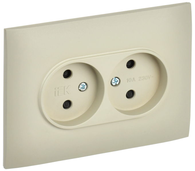 - IEK SKANDY Розетка 2-местная без заземления с защитными шторками 10А в сборе SK-R09B бежевый (SK-R23-10-K10-F)