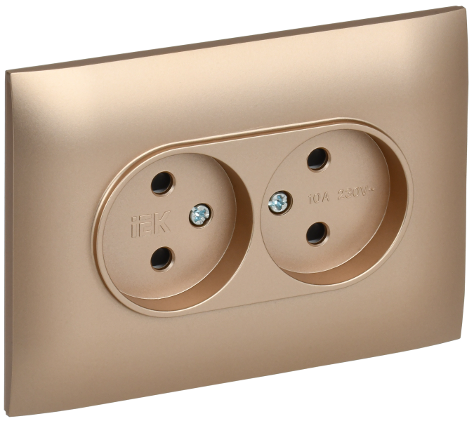 - IEK SKANDY Розетка 2-местная без заземления с защитными шторками 10А в сборе SK-R09Sa песочный (SK-R23-10-K98-F)
