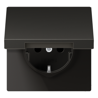 - JUNG Штепсельная розетка SCHUKO одинарная, с заземлением, с откидной крышкой, 16A, 250В (механизм + нак (AL1520KLAN)