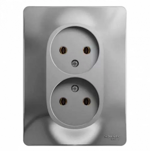 - SCHNEIDER ELECTRIC GLOSSA Розетка двойная без заземления в сборе алюминий (GSL000320)