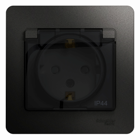 - SCHNEIDER ELECTRIC GLOSSA Розетка с заземлением со шторками с крышкой IP44 антрацит в сборе (GSL000748)