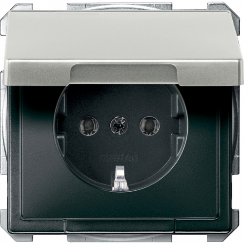 - SCHNEIDER ELECTRIC Механизм розетки Schuko с крышкой сталь (MTN2311-4146 )