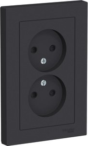 - SCHNEIDER ELECTRIC Розетка ATLASDESIGN двойная без заземления со шторками 16А в сборе карбон (ATN001022)