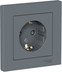 - SCHNEIDER ELECTRIC Розетка ATLASDESIGN с заземлением со шторками 16А в сборе грифель (ATN000744)