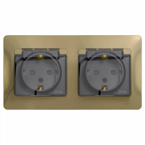 - SCHNEIDER ELECTRIC Розетка GLOSSA двойная с заземлением со шторками в сборе IP44 титан (GSL000447)