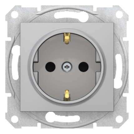 - SCHNEIDER ELECTRIC Sedna Розетка с заземлением со шторками в рамку алюминий (SDN3000160)