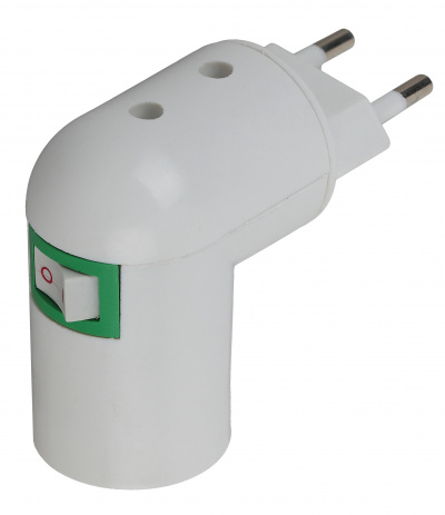 - ЭРА Переходник вилка-Е27 с выключателем, белый (20/200/3600) (Б0027981)