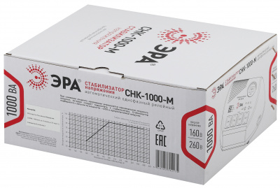 - ЭРА Стабилизатор напряжения компактный СНК-1000-М метрический дисплей 160-260В/220В, 1000ВА (Б0031067)