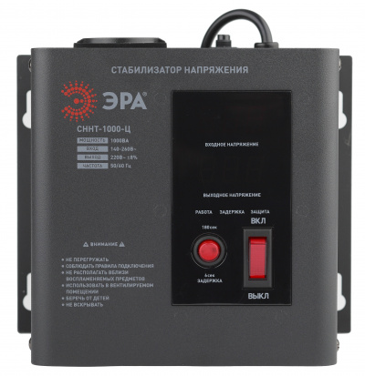 - ЭРА Стабилизатор напряжения настенный СННТ-1000-Ц цифровой дисплей 140-260В/220/В, 1000ВА (Б0020166)
