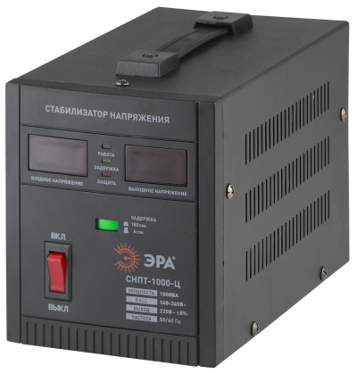- ЭРА Стабилизатор напряжения переносной СНПТ-1000-Ц цифровой дисплей 140-260В/220/В, 1000ВА (Б0020158)