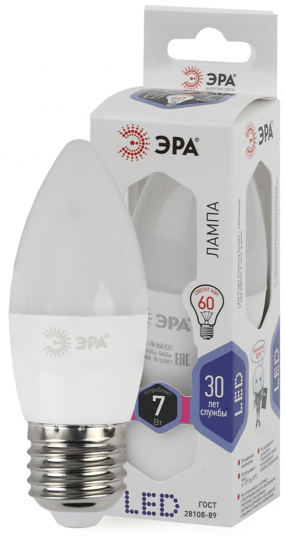 - ЭРА Лампа светодиодная LEDB35-7W-860-E27 (диод,свеча,7Вт,хол,E27) (Б0031413)