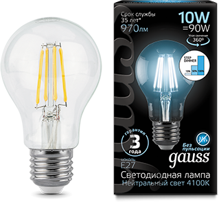 - GAUSS Лампа светодиодная LED 10Вт E27 4100К Filament A60 step dimmable (102802210-S)