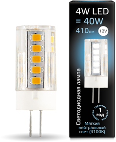 - GAUSS Лампа светодиодная LED 4вт 12в G4 белый, капсульная (207307204)