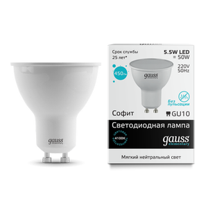 - GAUSS Лампа светодиодная LED 5.5вт, 230в, GU10, белый Elementary (13626)