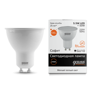 - GAUSS Лампа светодиодная LED 5.5вт, 230в, GU10, теплый Elementary (13616)