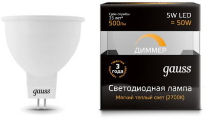 - GAUSS Лампа светодиодная LED 5вт 220в GU5.3 теплый (101505105)