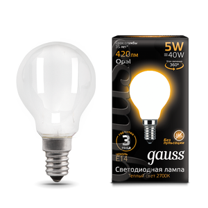 - GAUSS Лампа светодиодная LED 5Вт 230в,E14 Filament OPAL теплый,шар (105201105)
