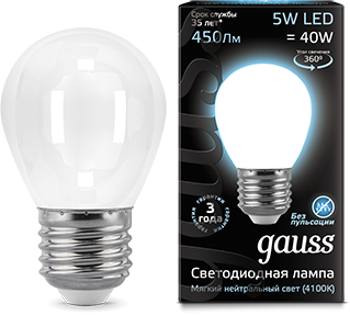 - GAUSS Лампа светодиодная LED 5Вт 230в,E27 Filament OPAL белый,шар (105202205)