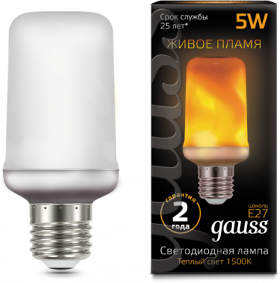 - GAUSS Лампа светодиодная LED 5Вт E27 1500K T65 Corn Flame (157402105)