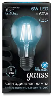 - GAUSS Лампа светодиодная LED 6вт 230в Е27 FILAMENT белый (102802206)
