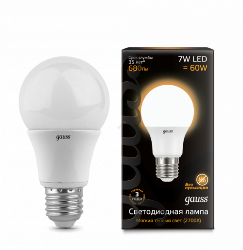 - GAUSS Лампа светодиодная LED 7вт 230в А60 Е27 теплый (102502107) (102502107)