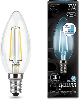 - GAUSS Лампа светодиодная LED 7Вт 230в, E14 Filament белый, свеча (103801207)