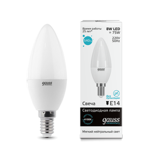 - GAUSS Лампа светодиодная LED 8вт 230в, Е14, белый, свеча Elementary (33128)