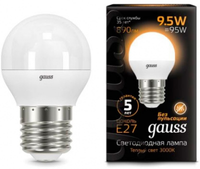 - GAUSS Лампа светодиодная LED 9.5Вт E27 шар,теплый (105102110)